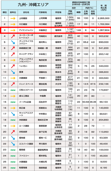 2025年年間完工数ランキング昨年に続き、第3位を獲得(九州・沖縄エリア)